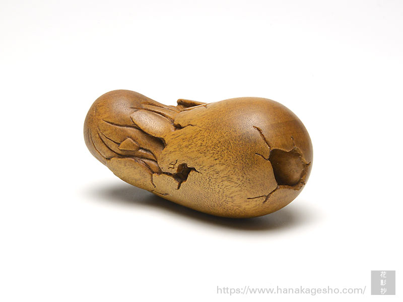大きさ:6.5 × 3.5 × 3.5 cm 素材:洋黄楊 象嵌:ガラス、岩絵具 制作年:令和2(2020)年