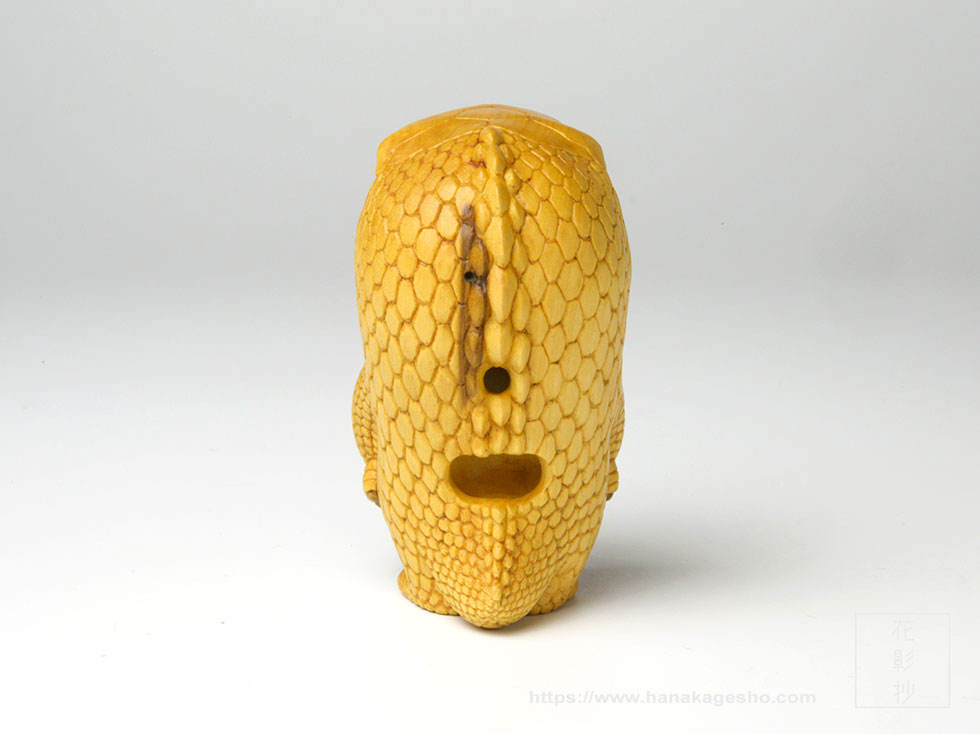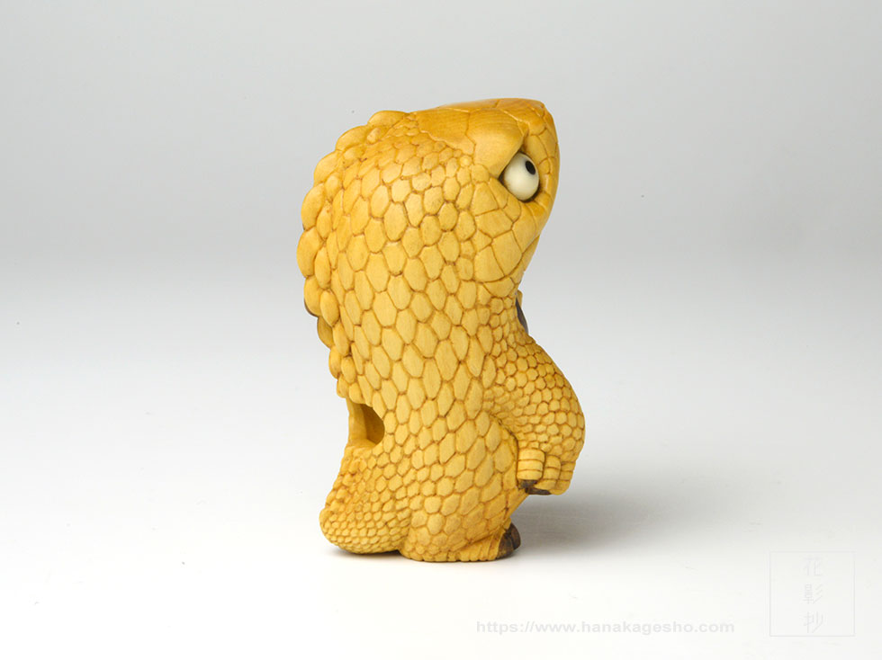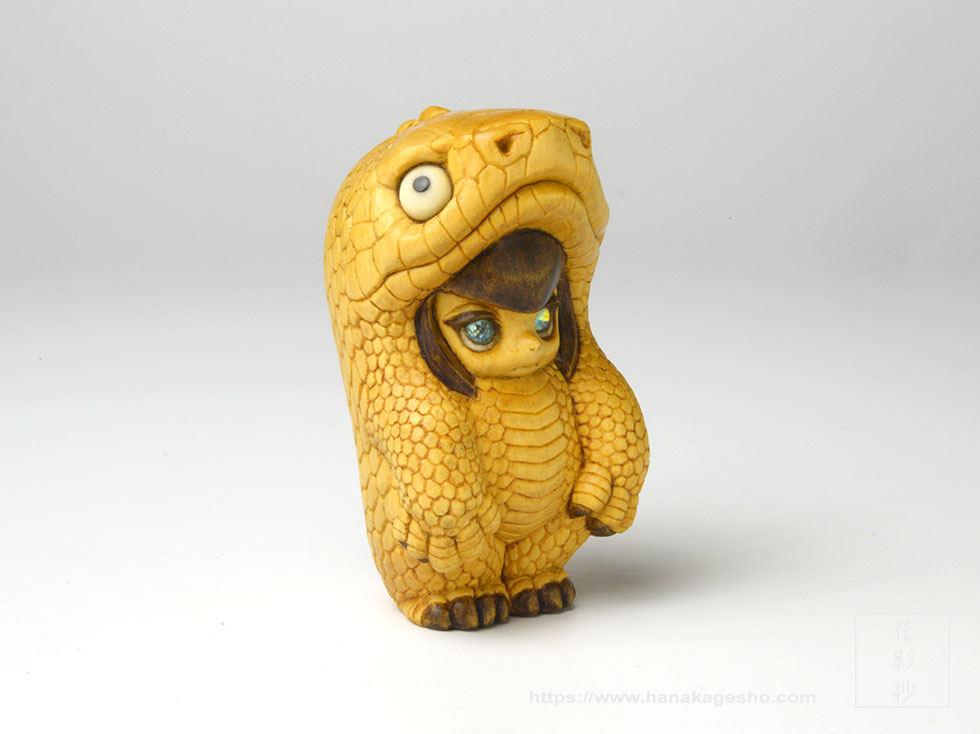 - japanese box wood with stag antler, buffalo horn, crystal, natural mineral pigments, glitter inlays